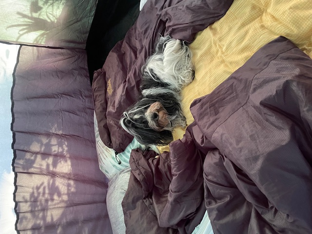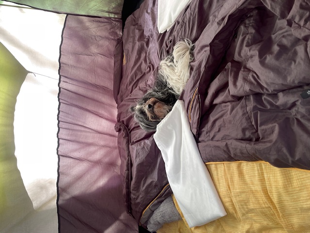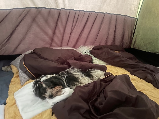 Zwei angenehme kleine Spaziergänge für das Übliche, ein bisschen Knuddeln und Spielen, pünktlich Futter und die meiste Zeit die Liegestatt für mich alleine. Da gestalte ich dann zwischendurch auch mal gerne ein wenig um.