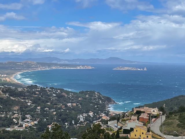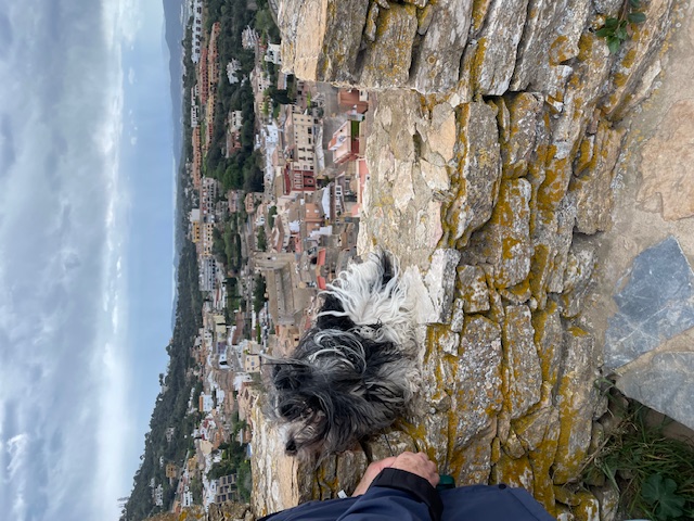 Der Ausflug heute war aber ganz okay. Mann hat sich gewünscht, Begur zu besuchen und da waren wir dann auch. Ist von der Entfernung her grad angenehm für ein Nickerchen. Gibt jetzt doch wieder freudige Ausbrüche von Frauchen, anscheinend sind die blühenden Obstbäume ein Grund dafür. Ansonsten gab es viele Kommentare zum offenbar wirklich heftigen Wind, der sich bei Allem heute als zumindest aufdringlich gezeigt hat. Trotzdem war es eine schöne Wanderung auf die alte Burg (eher Reste, aber was weiß ich schon) und dieses Mal durfte ich auch die Aussicht genießen.
