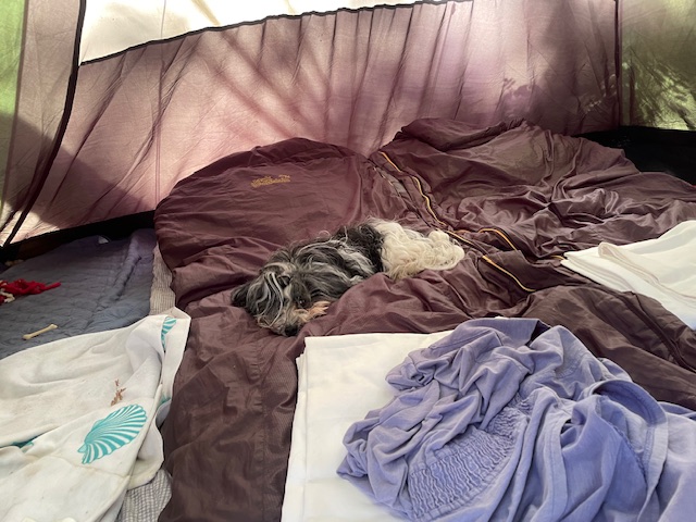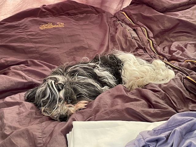 Kleine Gassirunden, Herumlungern und Herumsitzen (je nach Veranlagung), den Tag genießen. Nicht mal nach der Bürste geschielt haben sie heute (vielleicht auch bloß vergessen, wie auch immer, mir soll‘s recht sein) und das ist an solchen Tagen fast Standard.