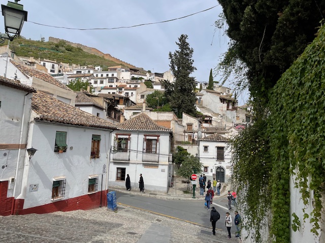 Heute war es soweit. Jetzt weiß ich, dass dieses „Granada“, von dem in den letzten Tagen öfter mal die Rede war, nichts zum Fressen oder Essen ist, ganz und gar nicht. Es ist eine Stadt, eine von denen, in die Menschen reisen, um dort herumzulaufen, alles anzuschauen und irgendwie macht sie das froh. Meine Menschen jedenfalls. Da sind sie dann immer ganz wunderlich und erzählen sich zum Beispiel gegenseitig, was sie sehen, obwohl sie gemeinsam davor stehen. Oder schauen wie heute wildfremden Leuten auf der Straße beim Tanzen zu.