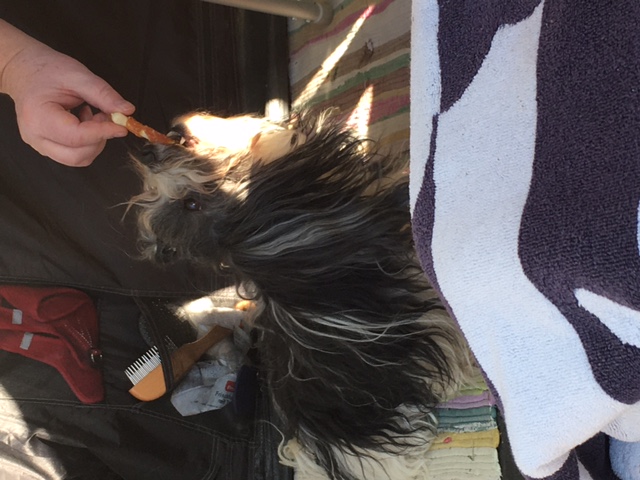Wir beschränken uns auf das wirklich Notwendige (kleine Runde für meine Bedürfnisse) und das Beste: es gibt pünktlich zu fressen. Ich bin ja nicht lästig, aber das bedeutet keineswegs, dass es mir nicht auffällt, dass unsere Unternehmungen oft dazu führen, dass ich aufs Futter warten muss. Aber hund muss mit seinem Personal halt oft geduldig sein.