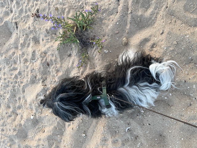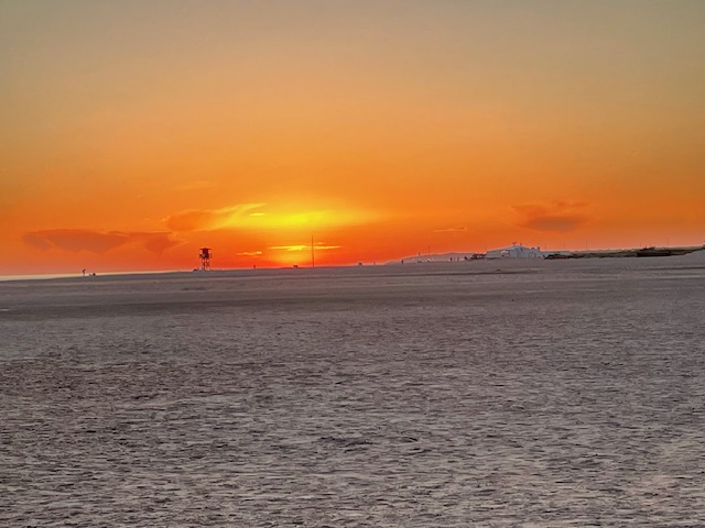 Damit wir uns richtig verstehen: war schön. Ein gemütlicher Spaziergang zum Strand, dort gibt es einen Weg, da darf ich auch hin und alles war richtig angenehm. Der Sonnenuntergang, den sie unbedingt erleben wollten, ist mir ja eher egal, aber ich hab es trotzdem sehr genossen. Außerdem war ja auch Vollmond (ja, natürlich kenne ich den, tief in meinem Inneren bin ich schließlich ein Wolf!), das mögen sie auch gerne und so war das Ganze für uns alle ein schöner Tagesausklang.