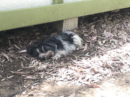 So wie es aussieht, ist das jetzt unser neuer Tagesablauf: nach dem Frühstück rasten, ich jedenfalls, die Menschen schreiben Postkarten, trinken Kaffee (das tun sie sowieso dauernd), rasten auch oder freuen sich über neue Dinge. Später dann, da unternehmen wir etwas. Ich finde das ja gut, denn es ist richtig heiß geworden, da will tagsüber eh keiner herumlaufen, da ist schon die kleine Gassirunde am Nachmittag eine echte Herausforderung.