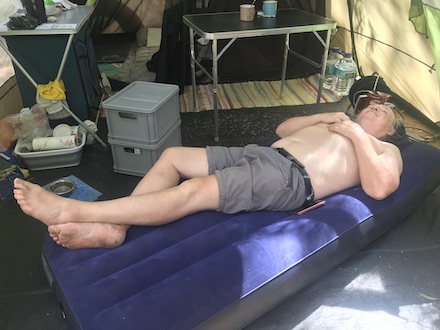 Jetzt sind wir alle müde, ich bin schlafen gegangen und sie sitzen vorm Zelt, trinken Rotwein und planen wahrscheinlich schon wieder etwas. Bin zufrieden.