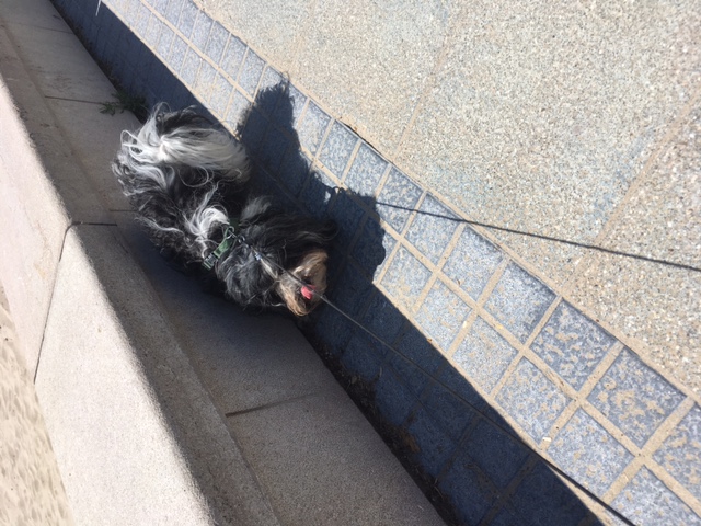 Nach dem Aufstehen waren sie ja noch ziemlich unternehmungslustig, da sind wir gleich mal auf die Strandpromenade gepilgert. Dort haben sie dann Kaffee getrunken und wir haben ganz lange alles beobachtet, was am Strand und im Wasser so passiert ist. Danach, auf dem Rückweg, haben sie beschlossen, dass es heute Eis zum Frühstück gibt. Ich weiß ja nicht, wieso, aber sie fanden das lustig. Ich nicht so. Hab mal wieder die Sache mit dem Hinlegen probiert, klappt allerdings in letzter Zeit nicht mehr so gut. Menschen zu erziehen ist echt eine langwierige Aufgabe.