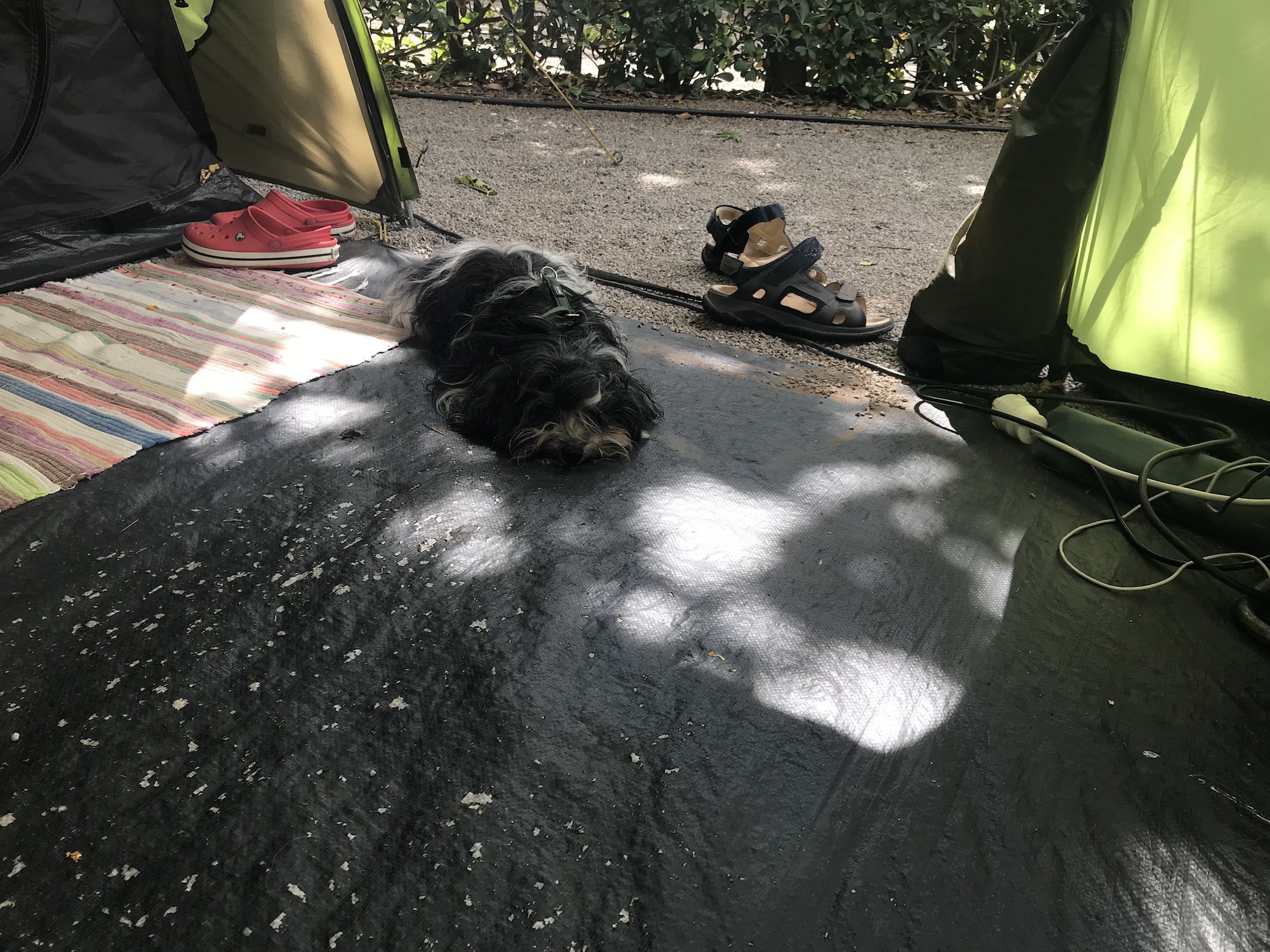 So schnell ist alles wieder ganz anders. Habe jetzt meine Gassirunde eingefordert, weil niemand Anstalten gemacht hat, mit mir loszuziehen. Die ganze Zeit haben sie Dinge hin- und hergeschichtet, das Auto aus- und wieder eingeräumt, im Zelt herumgekramt.