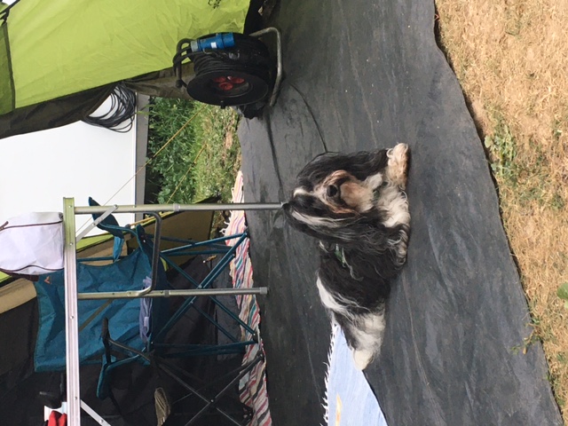 Sieht aus, als wären wir fürs Erste angekommen. Heute sind wir nicht so lang gefahren und am Ende durfte ich dann beim Zeltaufbauen zusehen. Ich würde ja immer gerne mithelfen, aber sie lassen mich nicht. Dabei hätte ich echt supertolle Ideen, z. B. für die Gestaltung der Schlafstätte. Eigentlich stünde mir dieses Mitspracherecht auch zu, denn schließlich muss ich ja auch dort irgendwo liegen - nicht, dass ich kein eigenes Bettchen hätte, aber wie oft sind sie schon so wehrlos gegen meine Annäherungsversuche! Nun, ich habe mich in Geduld geübt, sie haben mich gelobt und jetzt glauben sie wieder, ich bin ein echt folgsamer Hund.
