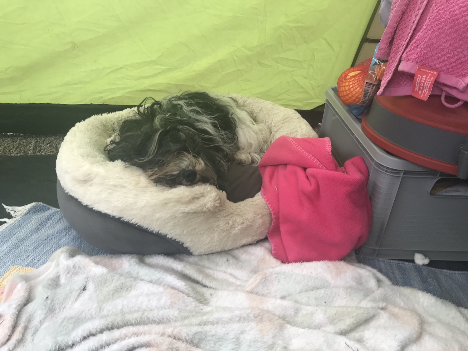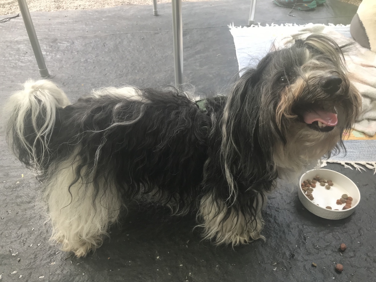 Meine Menschen sind inzwischen auch zufrieden, hier ist es nämlich eigentlich recht angenehm und auf dem Campingplatz gibt es ein großes Loch im Boden mit Wasser drin, jetzt schwimmen sie halt da. Ich darf auf die Restaurantterasse und da es endlich nicht mehr regnet, ist jetzt auch mal ein gemütlicher Kaffee (für die Menschen, ich kriege Belohnungen fürs Bravsein) drin.