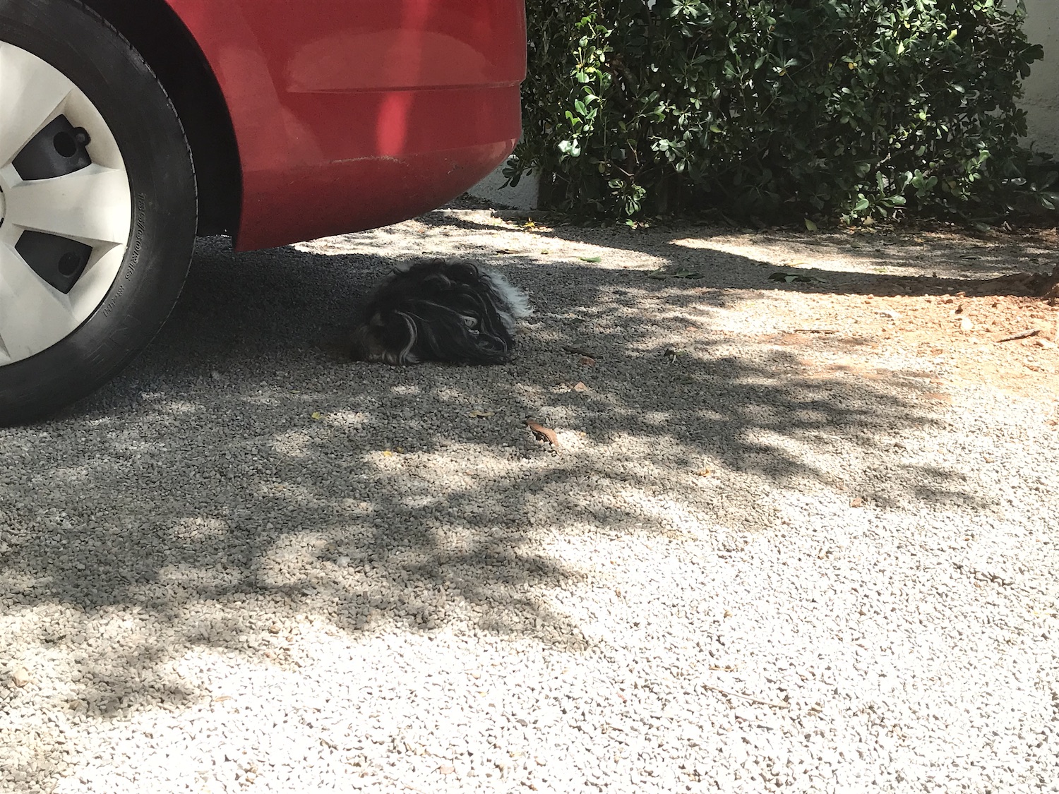 Best place ever! Das habe ich letztes Jahr von meinem Freund Buddy gelernt: wenn es heiß ist, leg Dich unter das Auto!